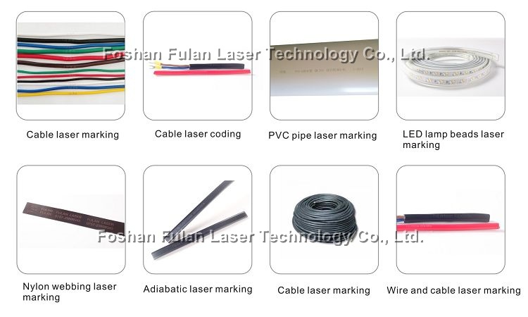 XL-GQ30cable dedicated full-automatic online laser marking machine is a laser marking machine independently developed and produced by Foshan Fulan Laser Technology Co., Ltd. The main components are imported, with more complete functions, more reliable performance, and operation More stable, easier to install and simpler to operate. It is a laser marking machine specially designed for wires, cables and coils, which can continuously complete online flying laser marking. Its unique hardware and software configuration enables it to measure the speed of cable movement in real time, thereby realizing dynamic cable length marking. It is widely used in various types of cables and wires (PVC, PU, PE, PPO materials, etc.), network cables, building materials pipelines, sealing tapes, labels, etc.