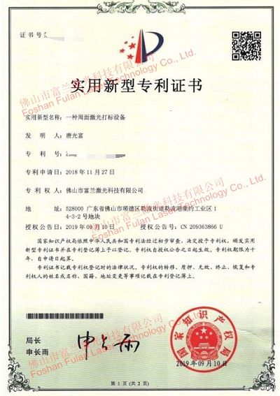 一種周面激光打標(biāo)機(jī)設(shè)備 專利證書
